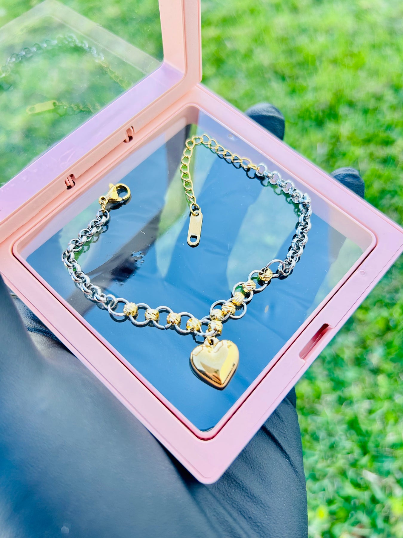Pulsera de Corazón Doble Tono